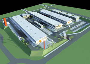 Condomínio Logístico / Múltiplo Uso. Módulos para atividades diversas com 2 acessos independentes (atendimento ao público e carga e descarga – fluxos e portarias individualizados). Possibilidade de utilização de mais de um módulo para atividades com maiores demandas. Previsão de edifícios para atividades corporativas e comerciais, e para serviços de apoio como restaurantes, administração, auditórios e outras conveniências. Todo complexo com administração, infra-estrutura e segurança gerida pelo Condomínio. Possibilidade de implantação do complexo por fases.